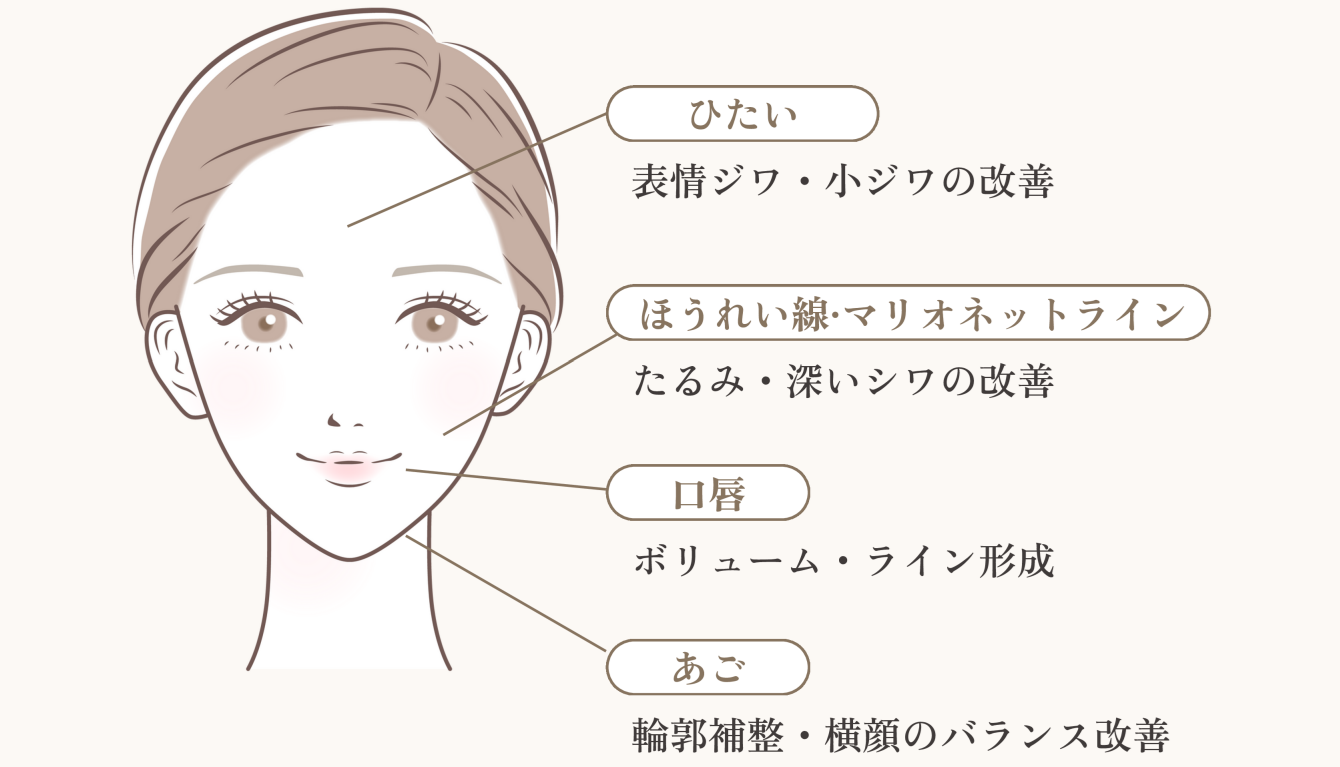 ボトックスには、筋肉の動きを整え、表情じわを予防し、輪郭やフェイスラインを引き締める力があります。