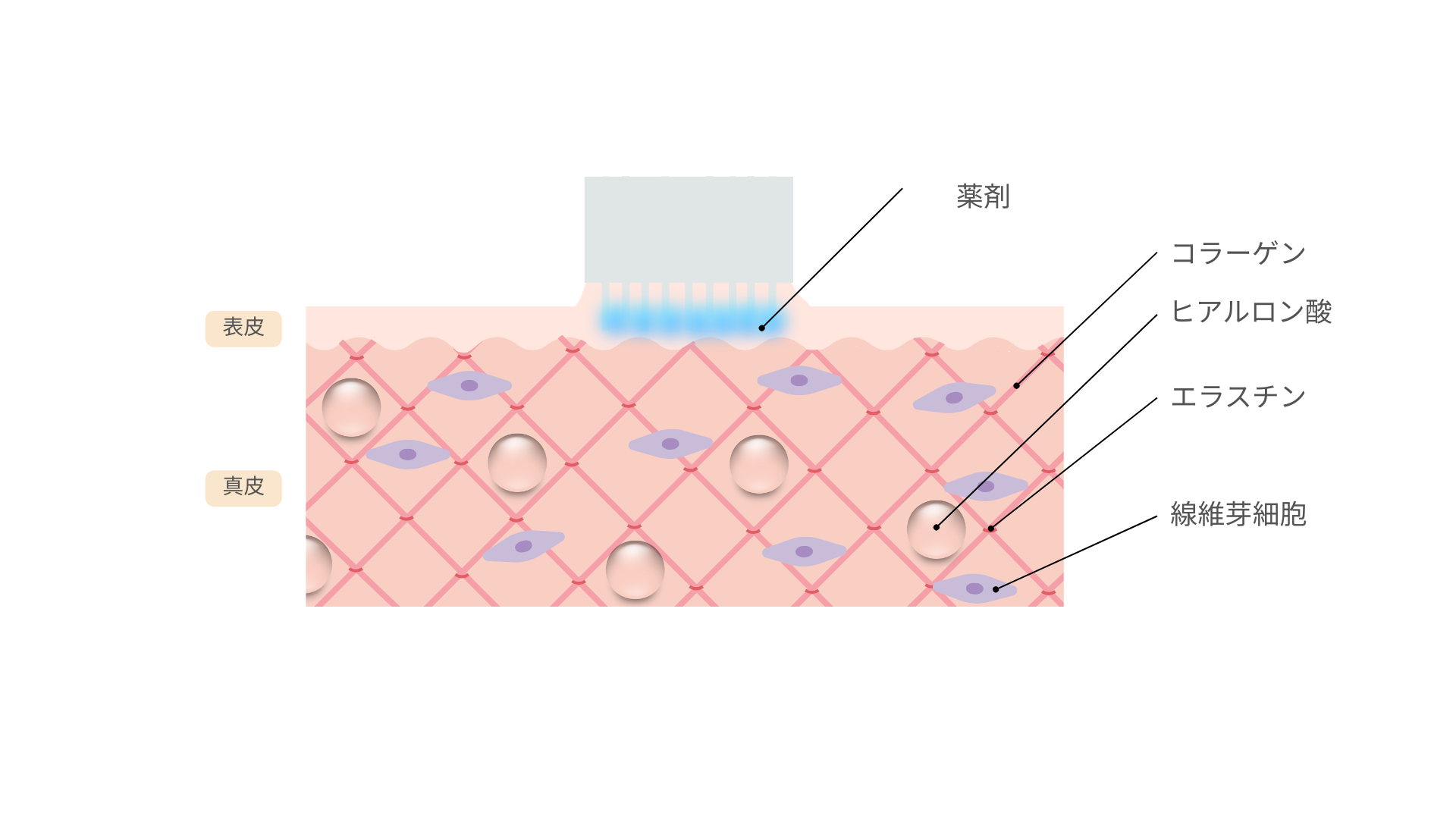 肌が薄くなり弾力を失った方、小じわやたるみが気になる、肌の弾力低下、ハリを復活させたい方におすすめです。